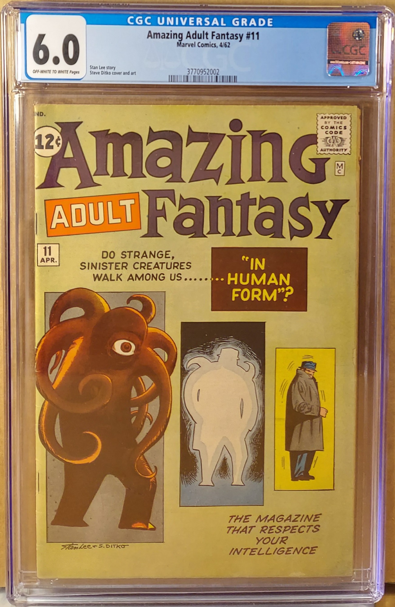 This is a truly unique series, short though it was, in that each and every issue contained stories that were all written and drawn by the same two talents.... Stan Lee and Steve Ditko. It was a continuation from Marvel's first, "Amazing Adventures" series, incorporating the word, "Adult" in the title and the blurb, "The Magazine That Respects Your Intelligence" prominently on each cover.